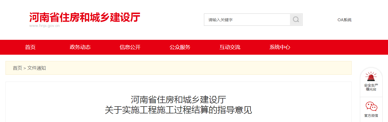 2020年7月23日,河南省住建廳下發(fā)《關(guān)于實(shí)施工程施工過程結(jié)算的指導(dǎo)意見》。