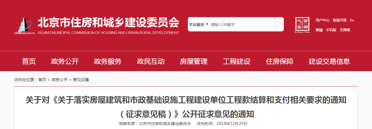 2019年1月17日,北京市住建委發(fā)布《落實(shí)房屋建筑和市政基礎(chǔ)設(shè)施工程建設(shè)單位工程款結(jié)算和支付相關(guān)要求的通知》,其中明確指出: