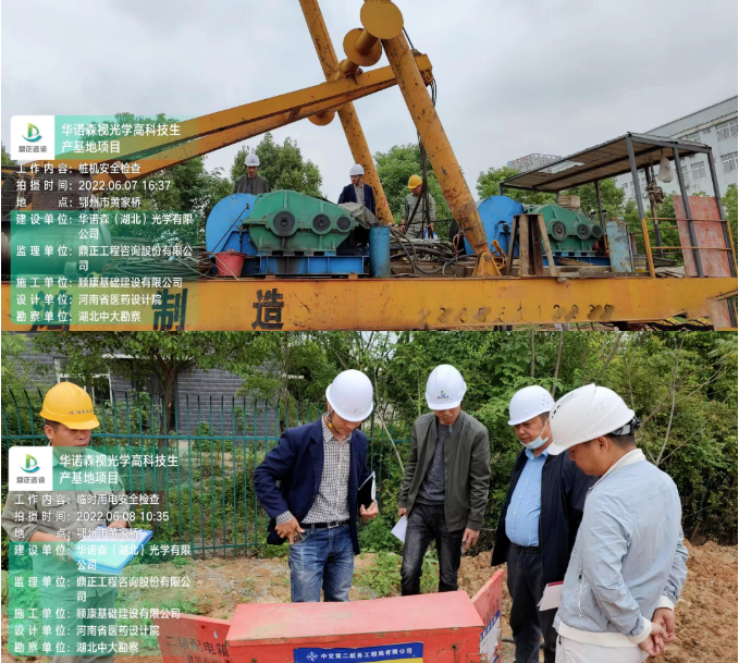 6月8日,華諾森視光學高科技生產基地項目總監理工程師杜勝與施工單位項目經理對施工現場、辦公區和生活區在內的臨時用電逐一檢查。針對檢查中發現的施工現場臨時用電技術安全資料的完整性,電源線路中接地線設置的規范性以及生活區電源線接口安全等問題,采取面對面交流的形式,現場指出問題所在,并講解安全用電規范,提高作業人員的安全意識。