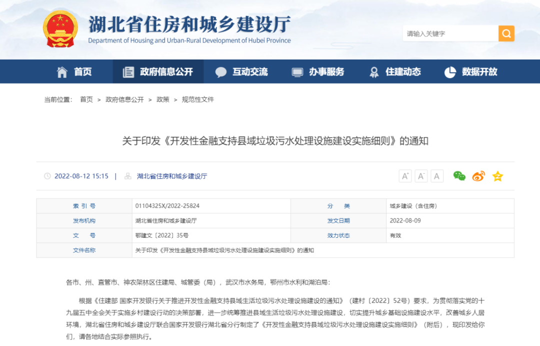 根據(jù)《住建部 國家開發(fā)銀行關(guān)于推進開發(fā)性金融支持縣域生活垃圾污水處理設(shè)施建設(shè)的通知》(建村〔2022〕52號)要求,為貫徹落實黨的十九屆五中全會關(guān)于實施鄉(xiāng)村建設(shè)行動的決策部署,進一步統(tǒng)籌推進縣域生活垃圾污水處理設(shè)施建設(shè),切實提升城鄉(xiāng)基礎(chǔ)設(shè)施建設(shè)水平,改善城鄉(xiāng)人居環(huán)境,湖北省住房和城鄉(xiāng)建設(shè)廳聯(lián)合國家開發(fā)銀行湖北省分行制定了《開發(fā)性金融支持縣域垃圾污水處理設(shè)施建設(shè)實施細則》(附后),現(xiàn)印發(fā)給你們,請各地結(jié)合實際參照執(zhí)行。