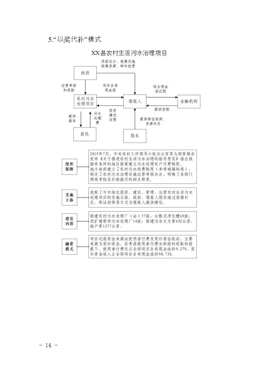 (五)多措并舉,創(chuàng)新模式。地方政府統(tǒng)籌安排,為符合條件的項目爭取多元化的資金,豐富項目資金籌措渠道。鼓勵支持市場化方式運營的項目,包含政府與社會資本合作(PPP)、特許經(jīng)營,以及環(huán)境綜合治理托管、環(huán)境污染第三方治理、生態(tài)環(huán)境導(dǎo)向的開發(fā)(EOD)等模式。