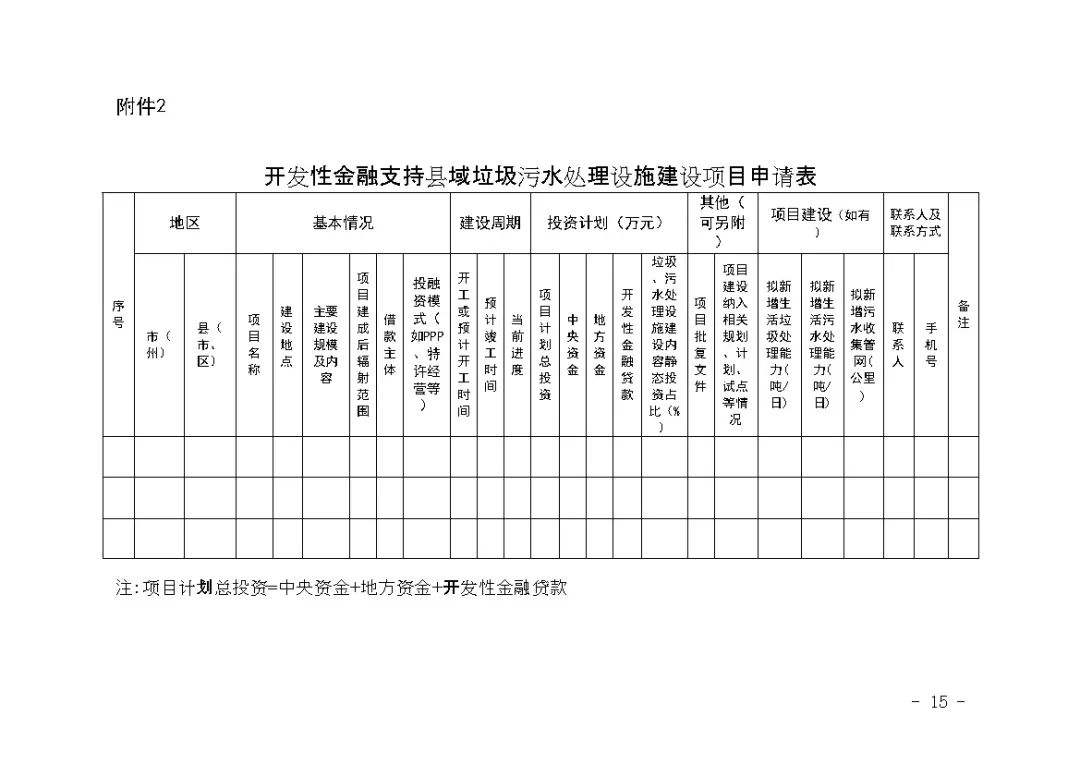2.開發(fā)性金融支持縣域垃圾污水處理設(shè)施建設(shè)項目申請表