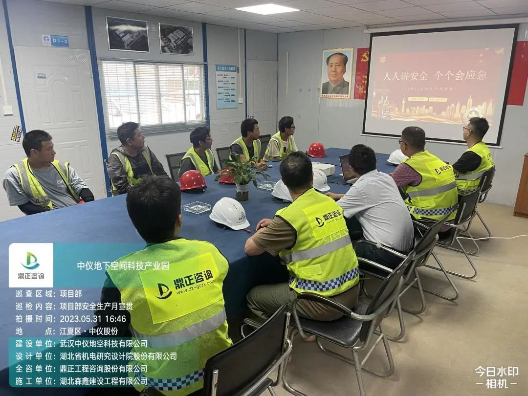 5月31日,鼎正項目管理事業部在中儀地下空間科技產業園項目組織“安全生產月”主題學習,項目管理事業部副經理張力主持會議,他指出,安全責任重于泰山,全體人員要深入貫徹習近平總書記關于安全生產的講話精神,持續深入學習安全生產“十五條措施”,從嚴從緊落實“第一責任人”責任,堅決防范生產安全事故發生。