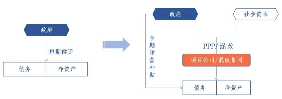 (2)對具備經(jīng)營條件的政府隱性債務(wù)項目,可通過引入社會資本等方式,將其改造為社會資本的債務(wù);