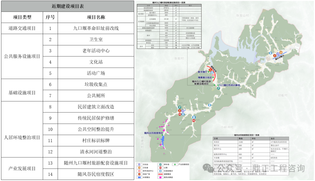 如九口堰村近期主要建設內(nèi)容為基礎設施與公共服務設施完善、人居環(huán)境整治,以及部分池塘整治和產(chǎn)業(yè)發(fā)展項目。